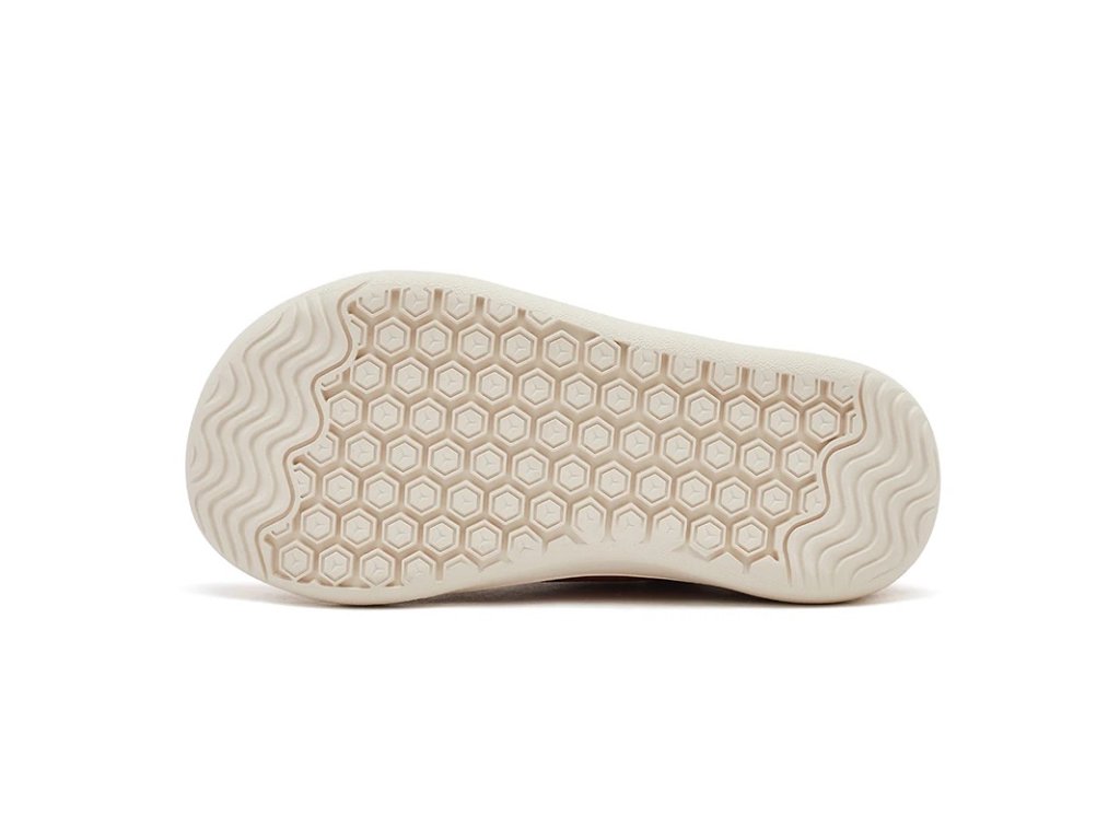 - Zero-drop design s tenkou podrážkou (~4 mm) - udržuje chodidla ve stejné výšce a umožňuje přirozený kontakt se zemí, což přispívá ke správné biomechanice chůze.